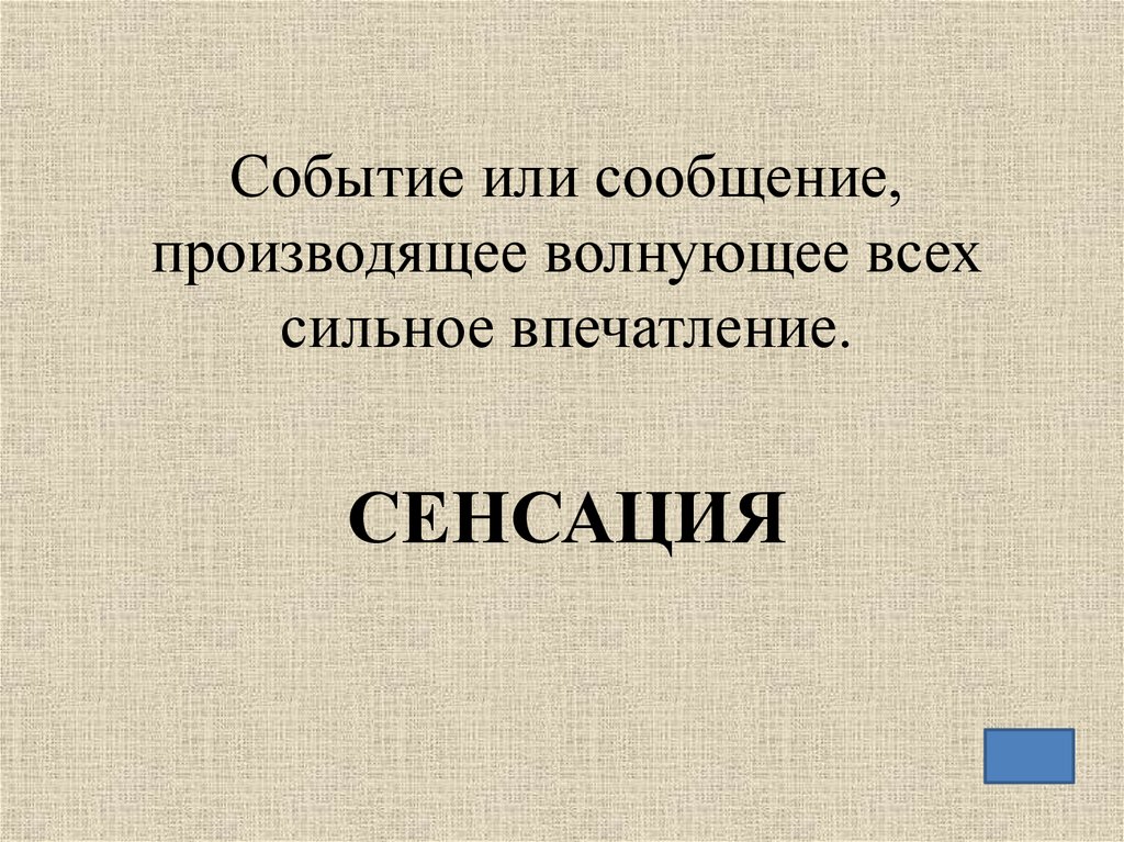 Событие или сообщение,производящее волнующее всех