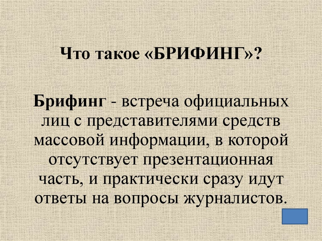 Что такое «БРИФИНГ»?Брифинг - встреча официальных
