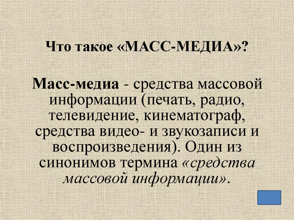 Что такое «МАСС-МЕДИА»?Масс-медиа - средства массовой