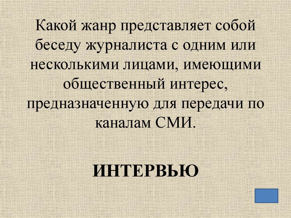 Какой жанр представляет собойбеседу журналиста с одним или
