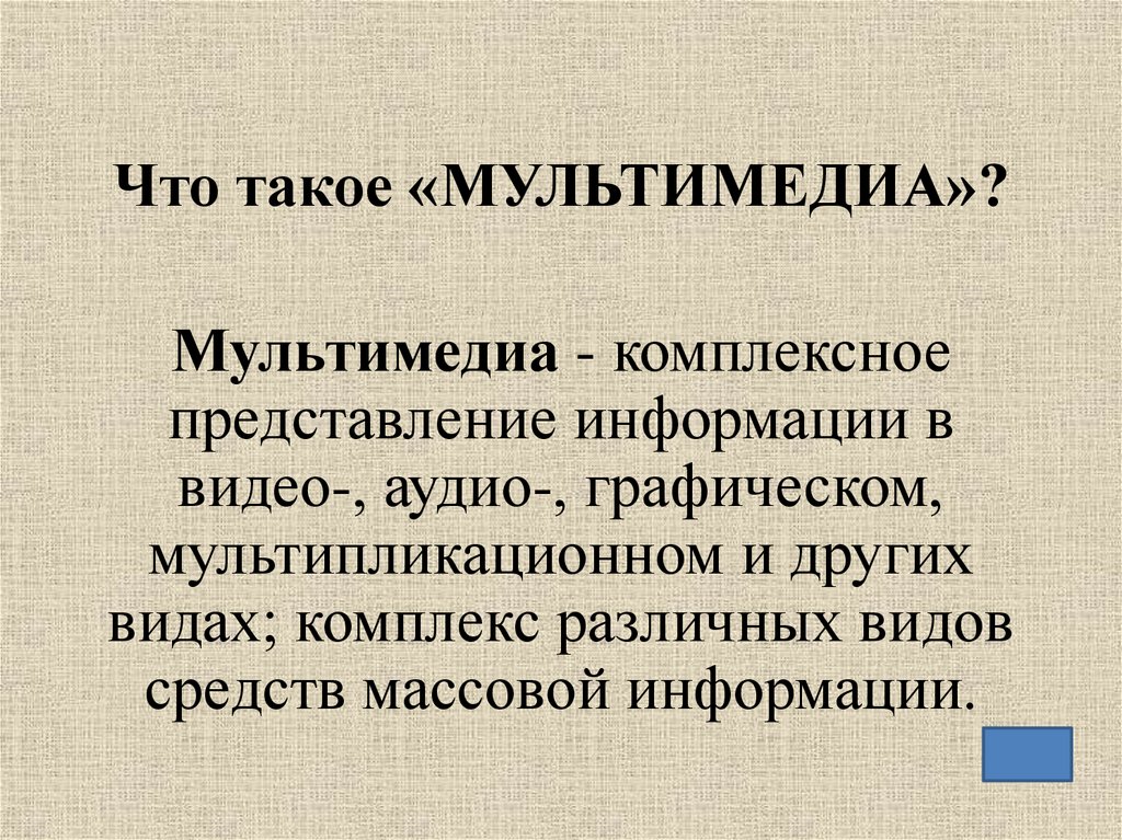 Что такое «МУЛЬТИМЕДИА»?Мультимедиа - комплексное