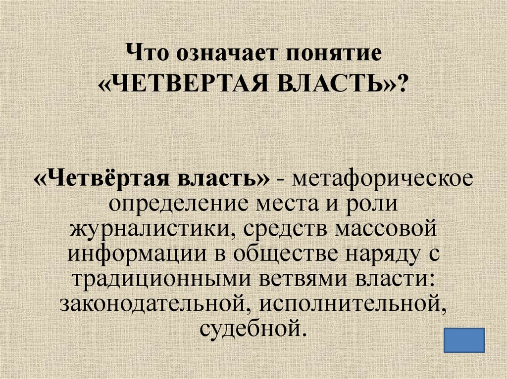 Что означает понятие«ЧЕТВЕРТАЯ ВЛАСТЬ»?