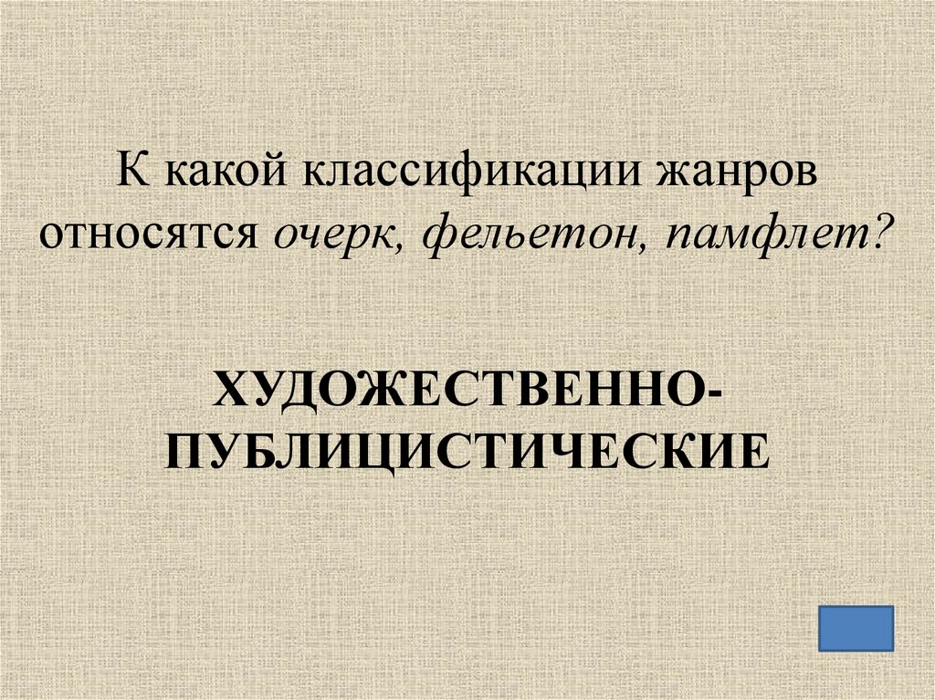 К какой классификации жанровотносятся очерк, фельетон, памфлет?