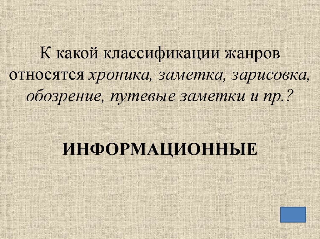 К какой классификации жанровотносятся хроника, заметка, зарисовка,