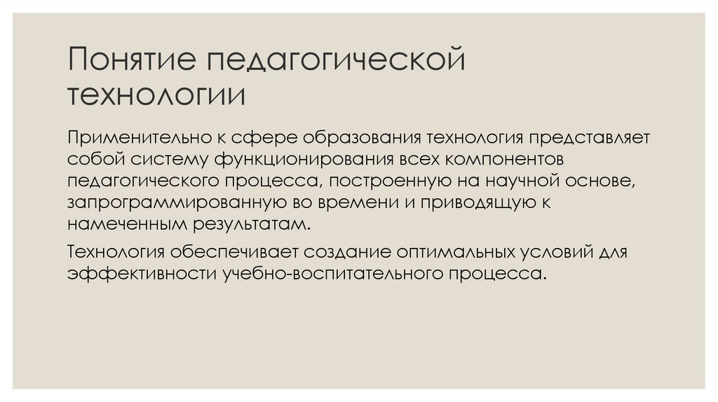 Понятие педагогическойтехнологии