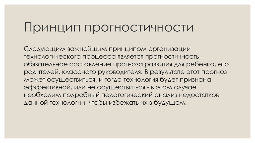 технологического процесса является прогностичность обязательное составление прогноза развития для ребенка, его