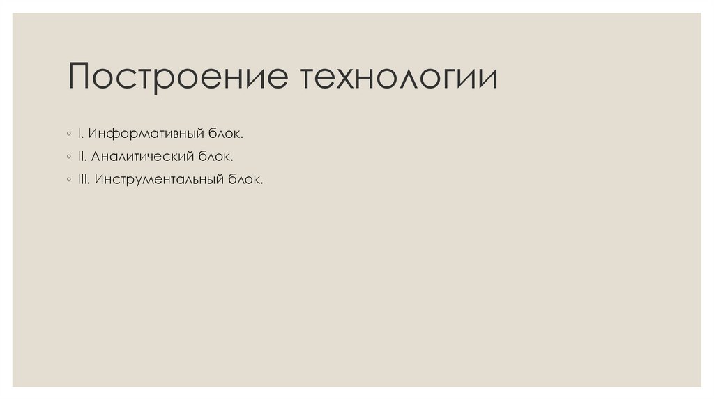 Построение технологии◦ I. Информативный блок.