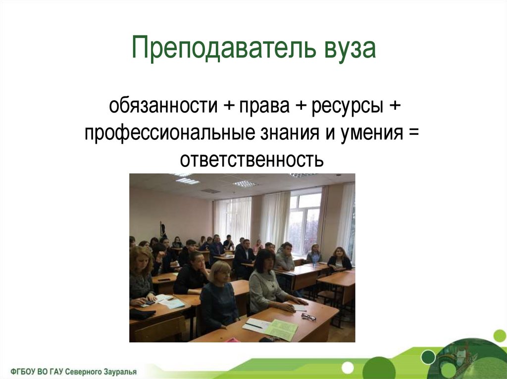 Преподаватель вузаобязанности + права + ресурсы +