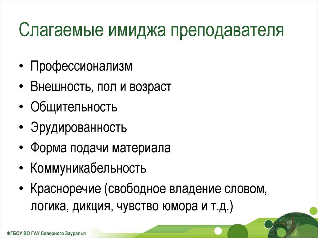 Слагаемые имиджа преподавателяПрофессионализм