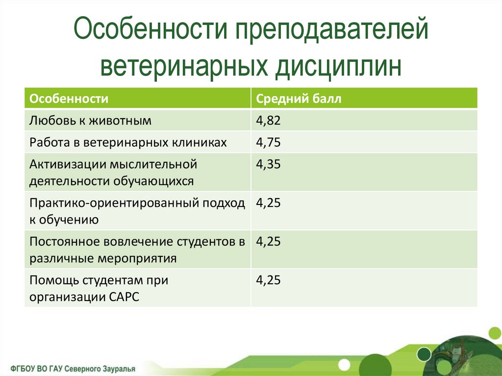 Особенности преподавателейветеринарных дисциплин