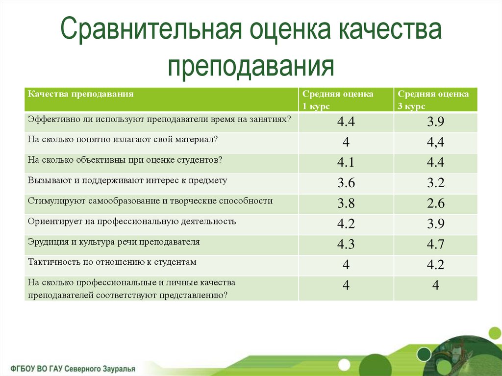 Сравнительная оценка качествапреподавания