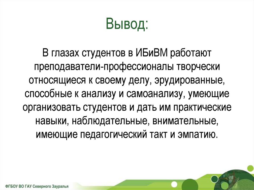 Вывод:В глазах студентов в ИБиВМ работают