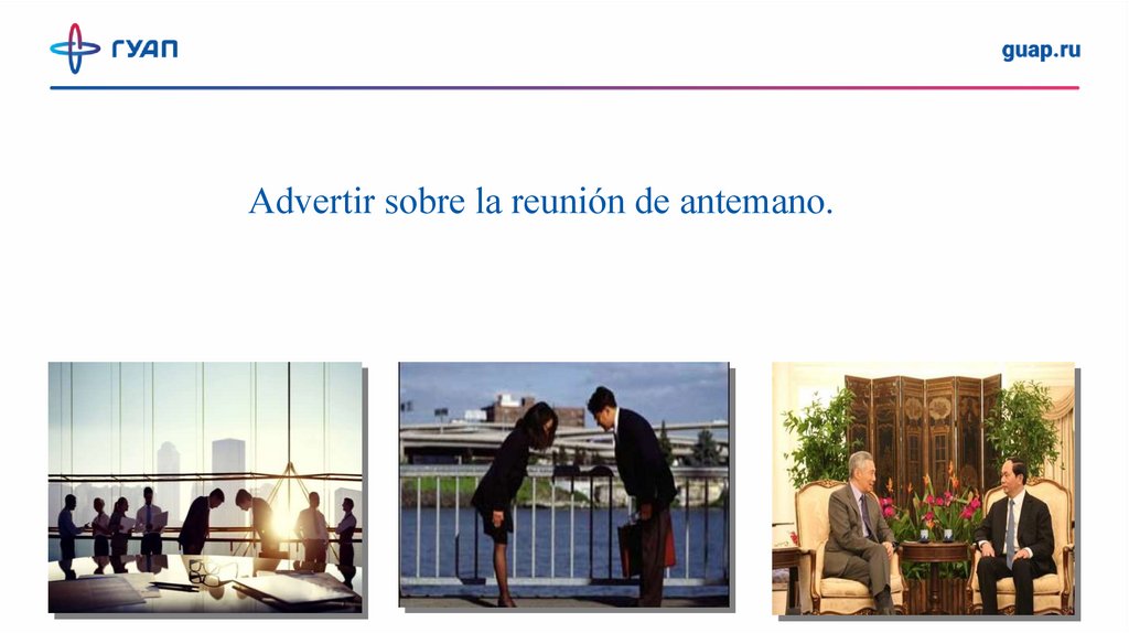 Advertir sobre la reunión de antemano.8.