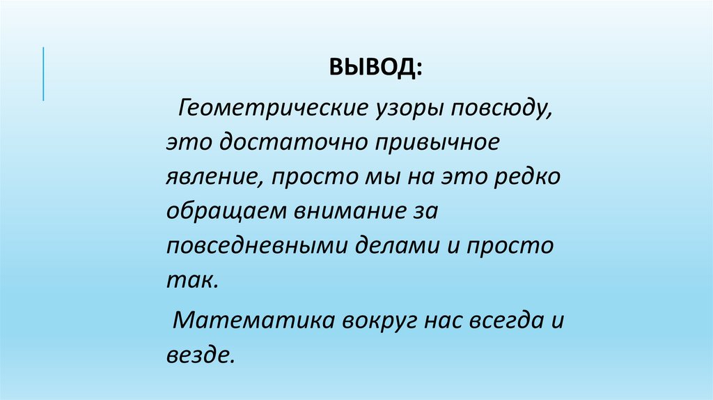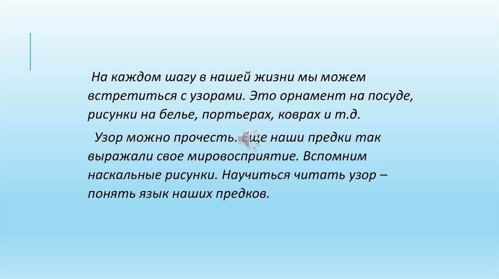 На каждом шагу в нашей жизни мы можемвстретиться с узорами. Это орнамент на посуде,