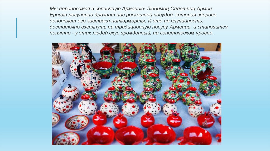 Мы переносимся в солнечную Армению! Любимец Сплетниц АрменЕрицян регулярно дразнит нас роскошной посудой, которая здорово
