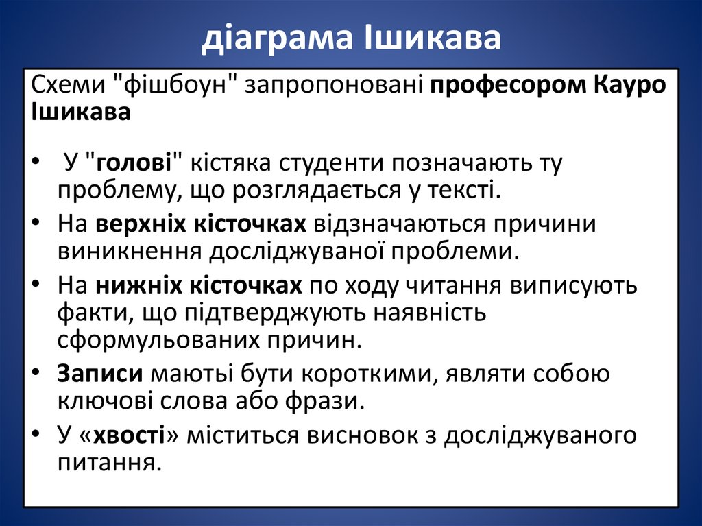 діаграма ІшикаваСхеми "фішбоун" запропоновані професором Кауро