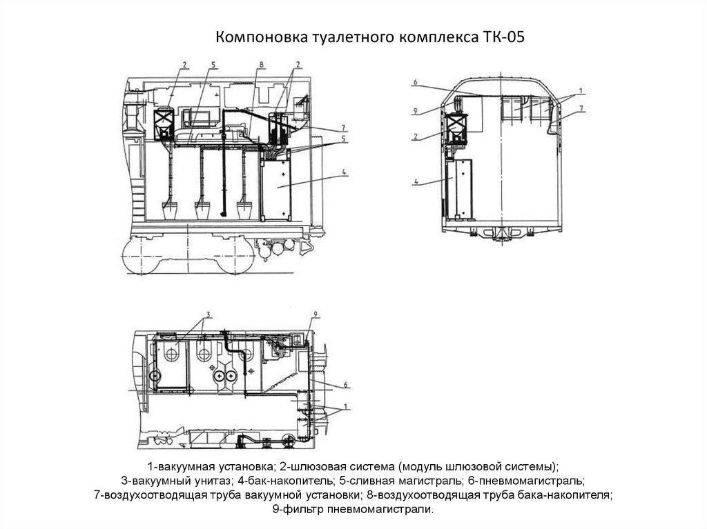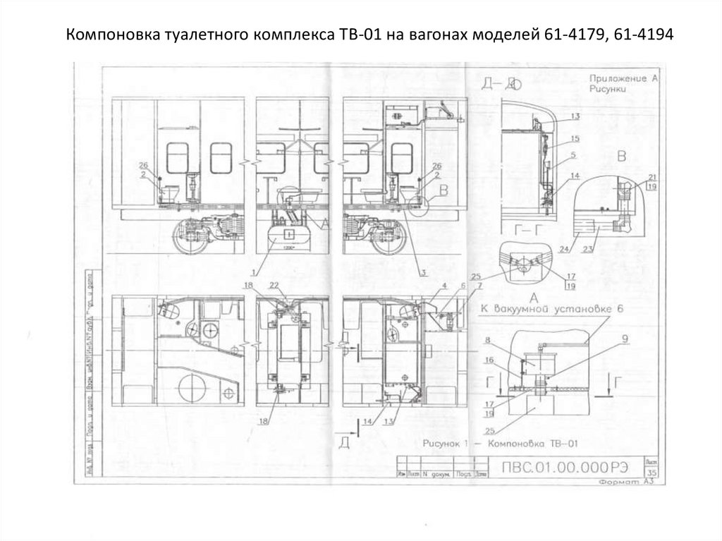 Компоновка туалетного комплекса ТВ-01 на вагонах моделей 61-4179, 61-41944.