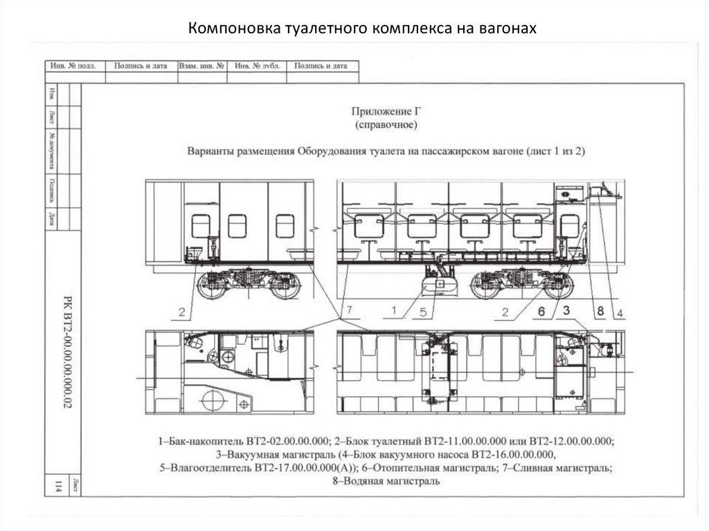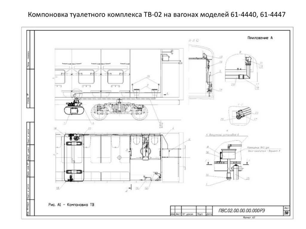 Компоновка туалетного комплекса ТВ-02 на вагонах моделей 61-4440, 61-44476.
