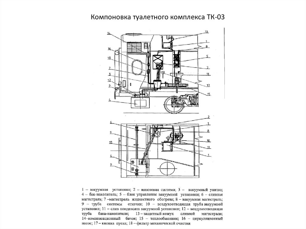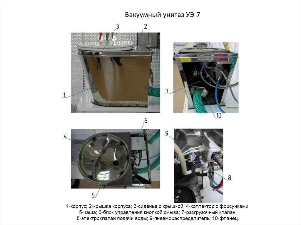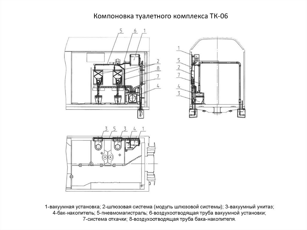 Компоновка туалетного комплекса ТК-061-вакуумная установка; 2-шлюзовая система (модуль шлюзовой системы); 3-вакуумный унитаз;