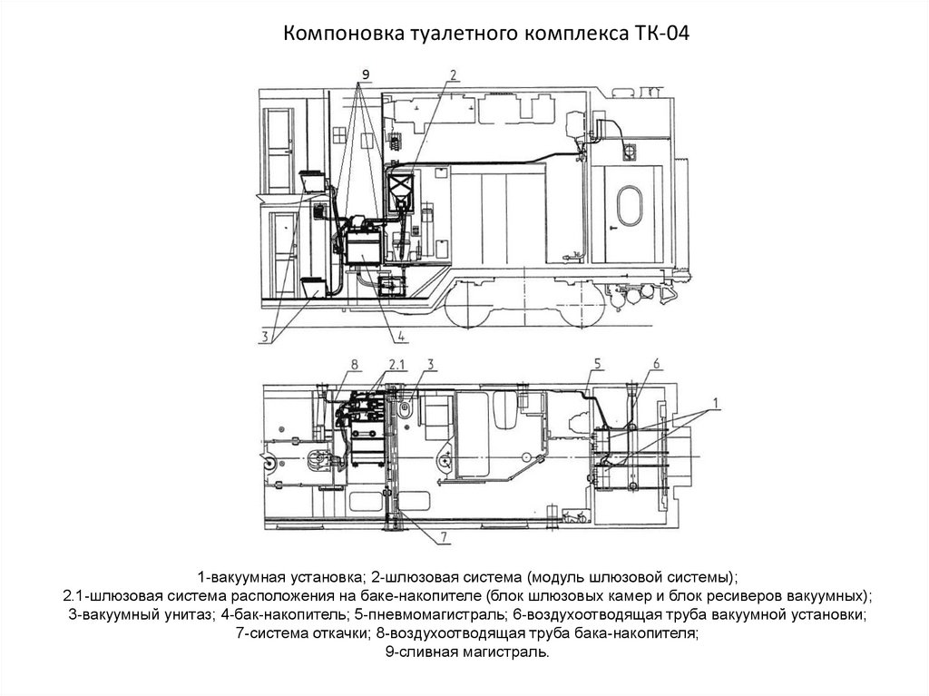 Компоновка туалетного комплекса ТК-041-вакуумная установка; 2-шлюзовая система (модуль шлюзовой системы);