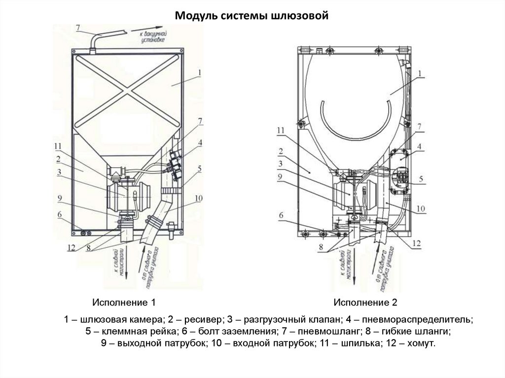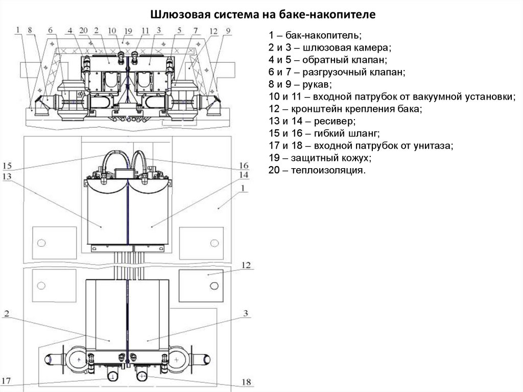 2.1-шлюзовая система расположения на баке-накопителе (блок шлюзовых камер и блок ресиверов вакуумных);