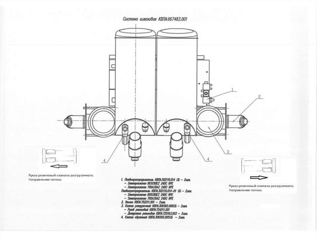 1 – шлюзовая камера; 2 – ресивер; 3 – разгрузочный клапан; 4 – пневмораспределитель;