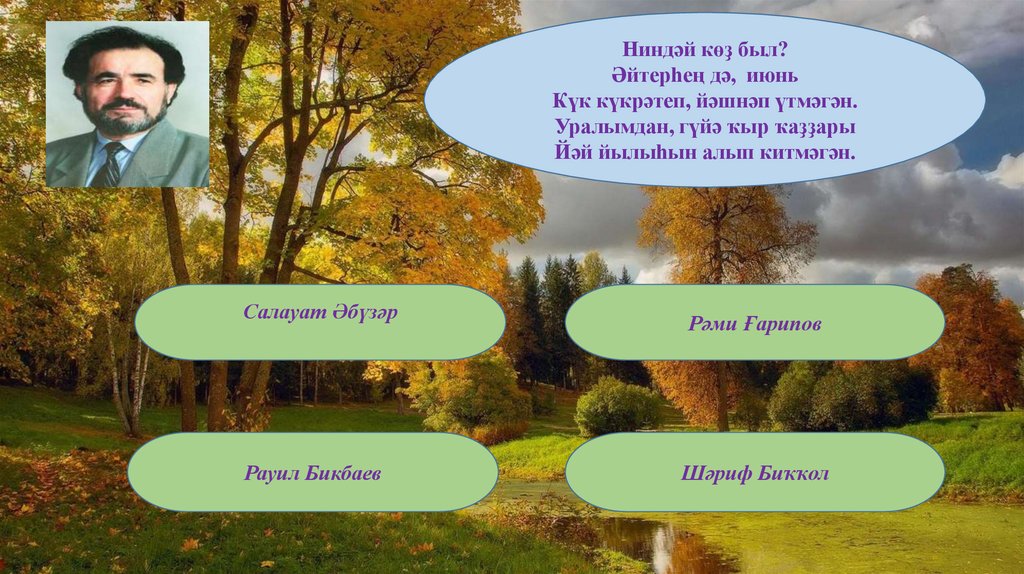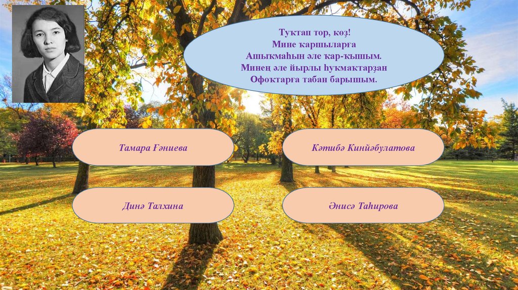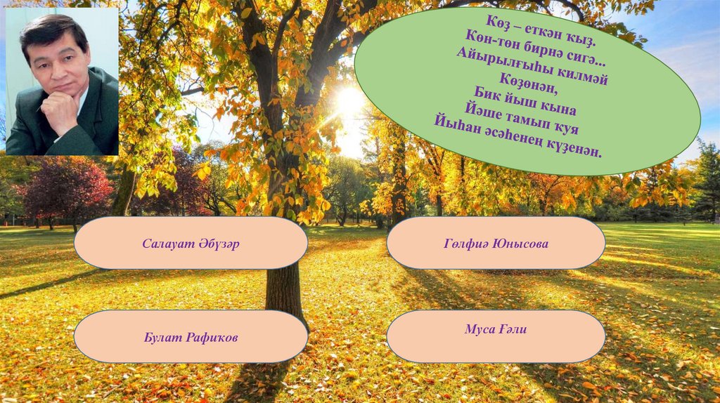 Ялҡау ғына һибелә һары япраҡ,Һарҡып ҡына һыҡтай көҙ күге: