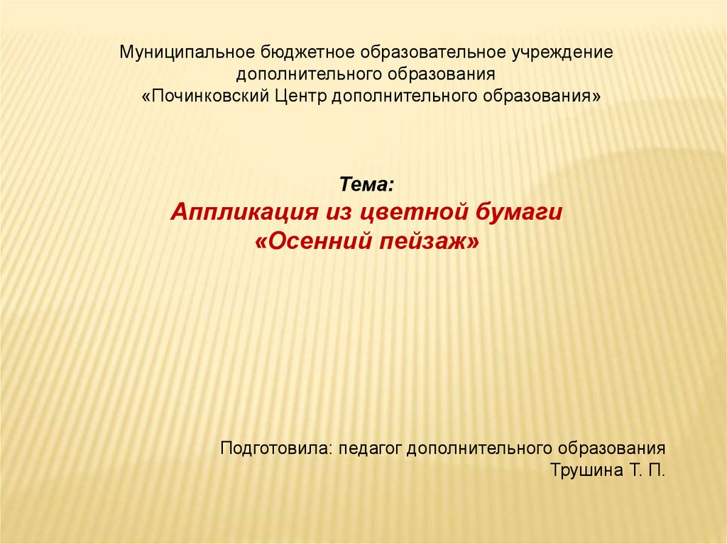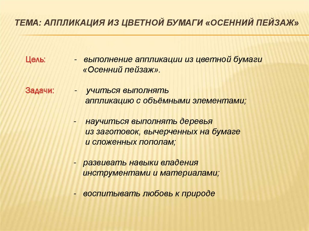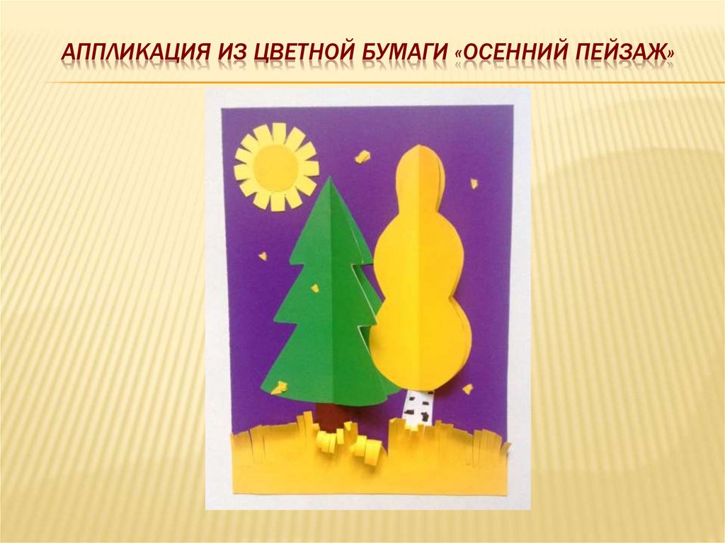 ТЕМА: АППЛИКАЦИЯ ИЗ ЦВЕТНОЙ БУМАГИ «ОСЕННИЙ ПЕЙЗАЖ»Цель: