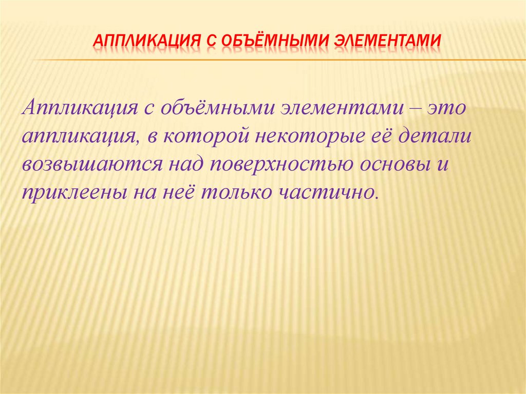 АППЛИКАЦИЯ С ОБЪЁМНЫМИ ЭЛЕМЕНТАМИАппликация с объёмными элементами – это