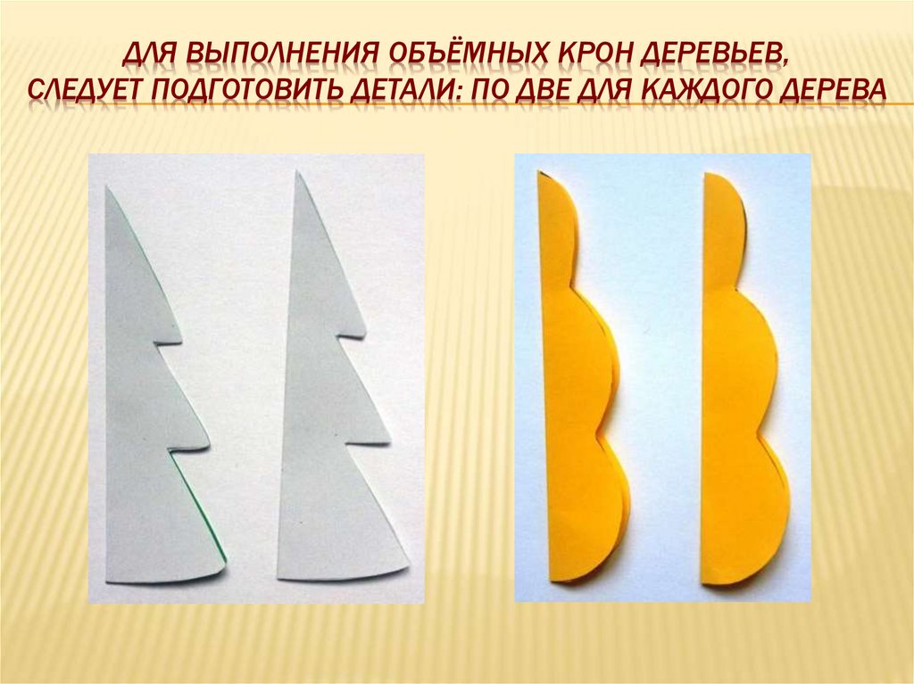 ДЛЯ ВЫПОЛНЕНИЯ ОБЪЁМНЫХ КРОН ДЕРЕВЬЕВ,СЛЕДУЕТ ПОДГОТОВИТЬ ДЕТАЛИ: ПО ДВЕ ДЛЯ КАЖДОГО ДЕРЕВА