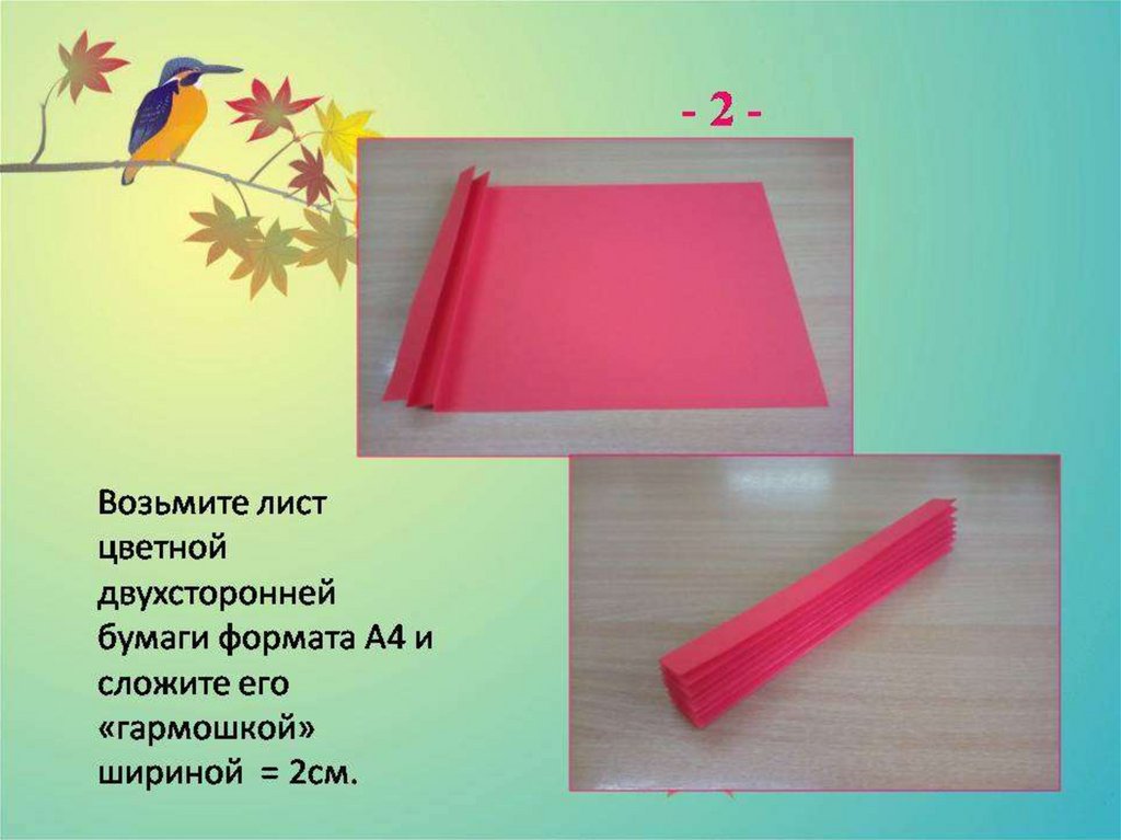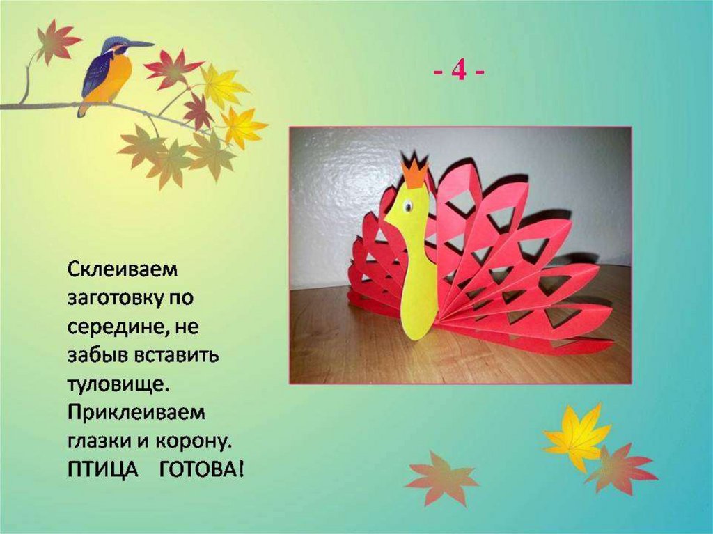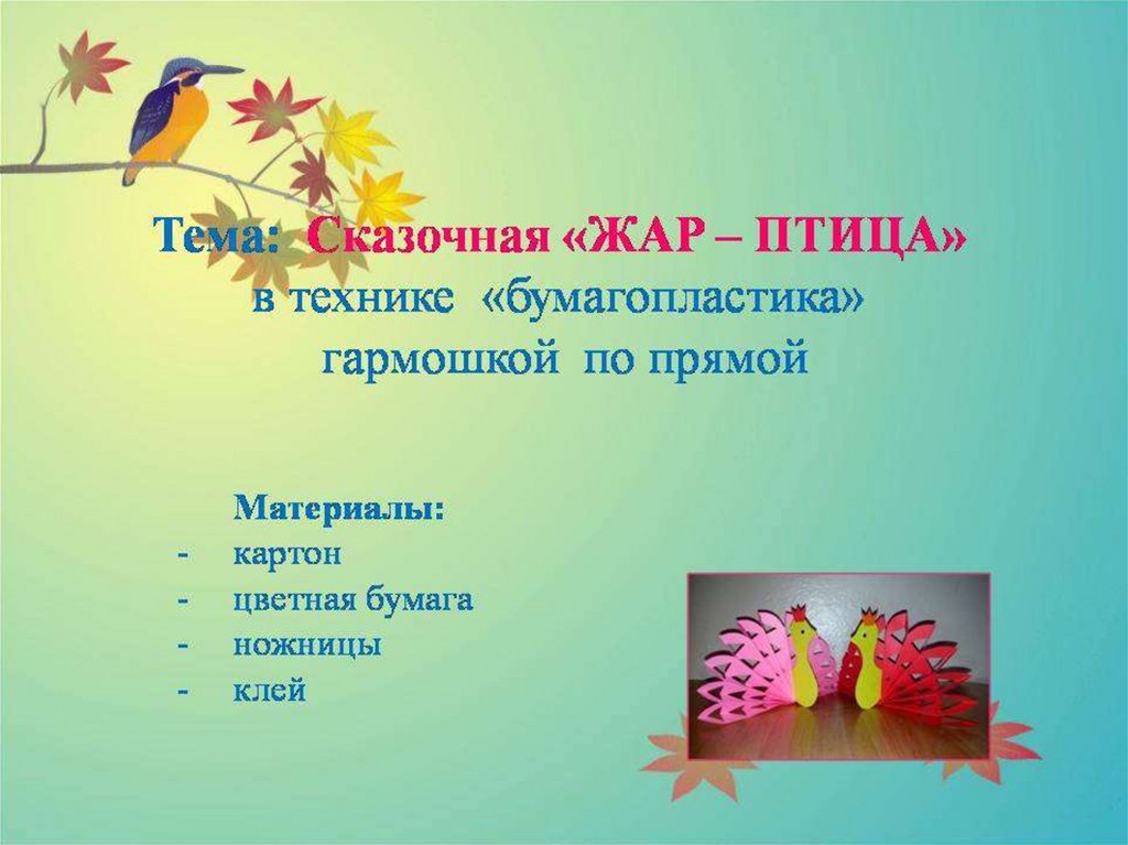 Сказочна "ЖАР-птица" в технике "бумагопластика" гармошкой по прямой