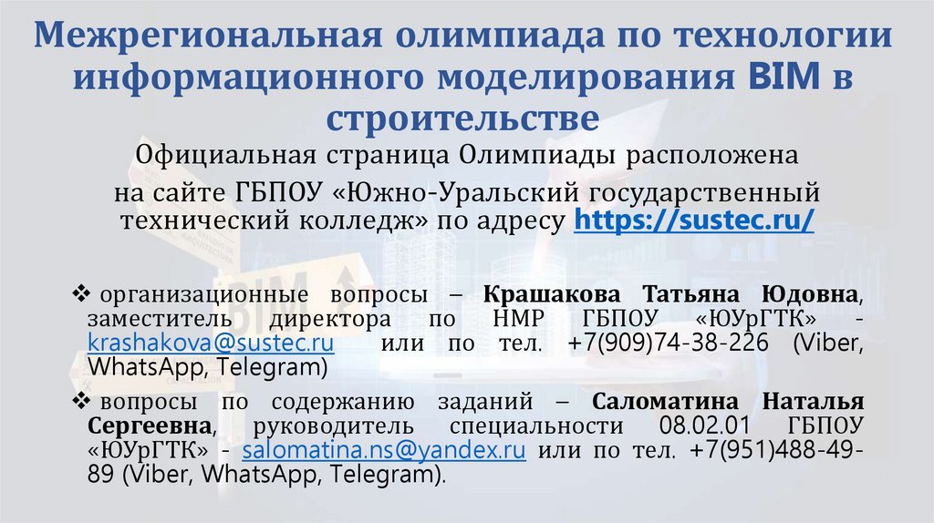 «ЮУрГТК» - salomatina.ns@yandex.ru или по тел. +7(951)488-4989 (Viber, WhatsApp, Telegram).