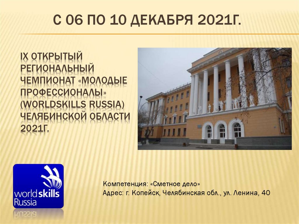 ПЕРВЫЙ РЕГИОНАЛЬНЫЙ ЧЕМПИОНАТПО КОМПЕТЕНЦИИ «СМЕТНОЕ ДЕЛО»