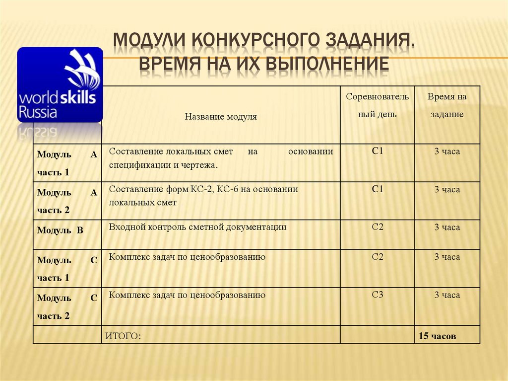 МОДУЛИ КОНКУРСНОГО ЗАДАНИЯ.ВРЕМЯ НА ИХ ВЫПОЛНЕНИЕ