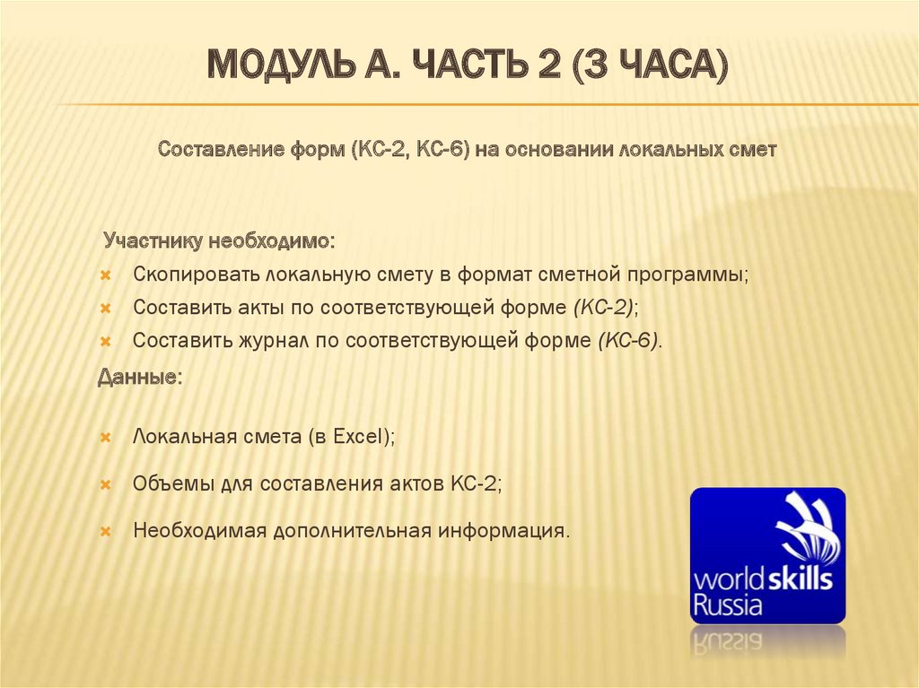 МОДУЛЬ А. ЧАСТЬ 2 (3 ЧАСА)Составление форм (КС-2, КС-6) на основании локальных смет