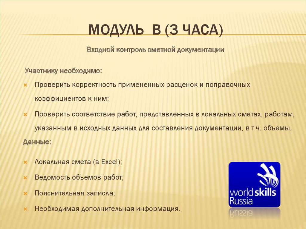 МОДУЛЬ В (3 ЧАСА)Входной контроль сметной документации