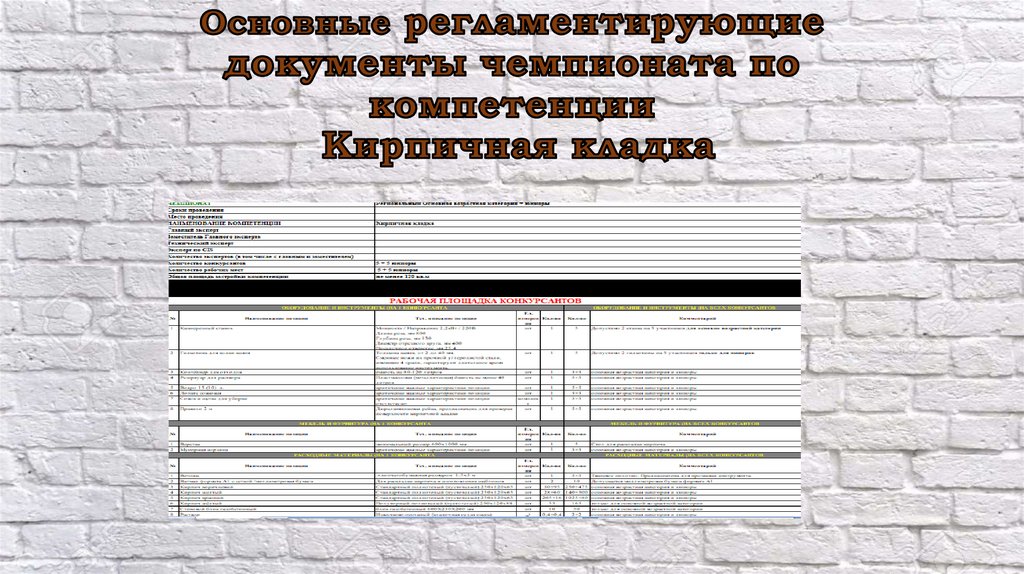Особенности проведения соревнований по компетенции "Кирпичная кладка"