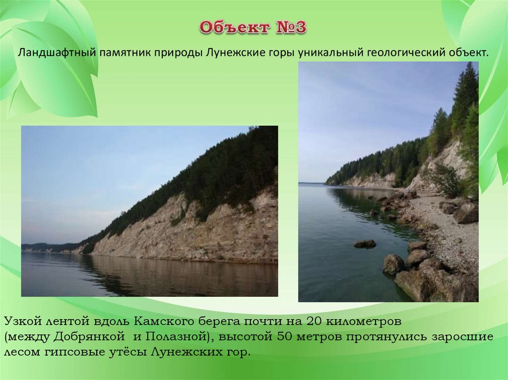 Ландшафтный памятник природы Лунежские горы уникальный геологический объект.Узкой лентой вдоль Камского берега почти на 20 километров