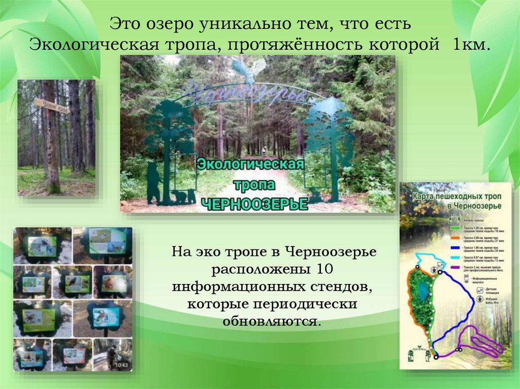 Это озеро уникально тем, что естьЭкологическая тропа, протяжённость которой 1км.