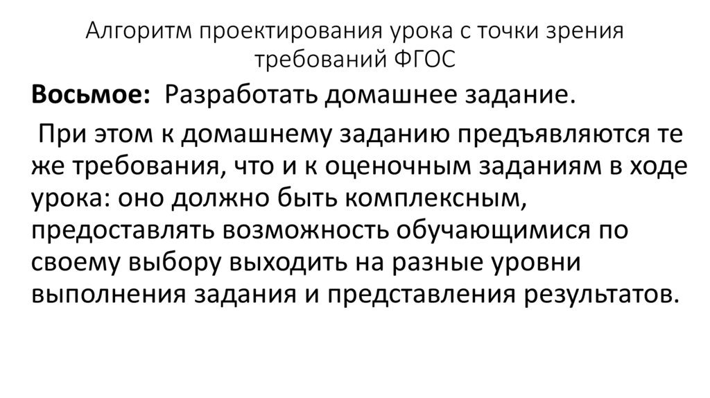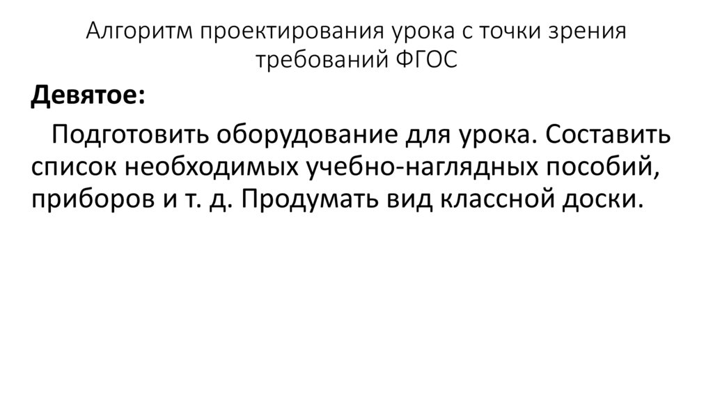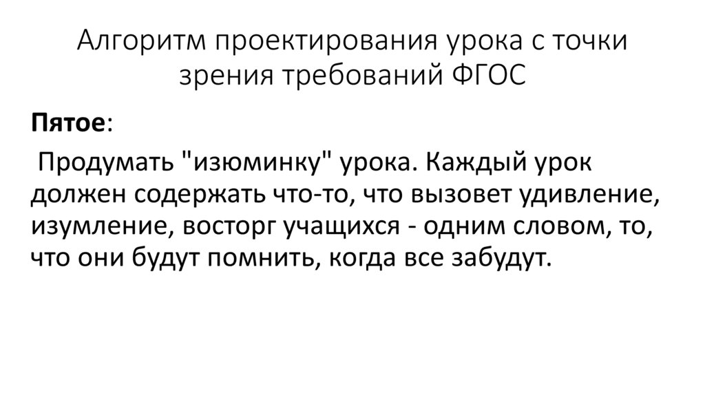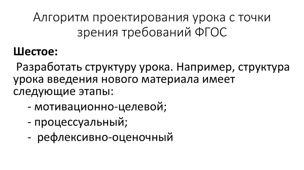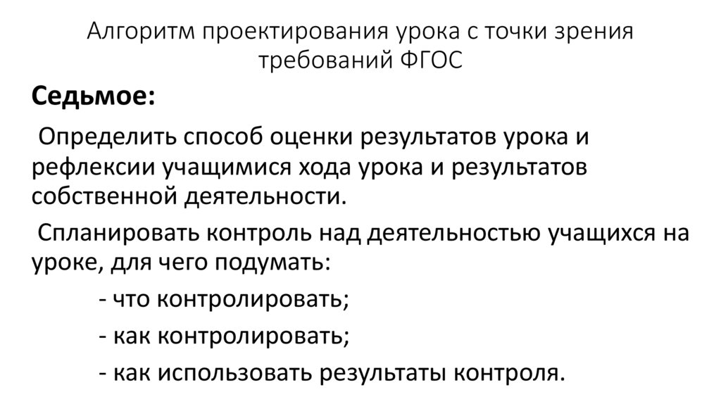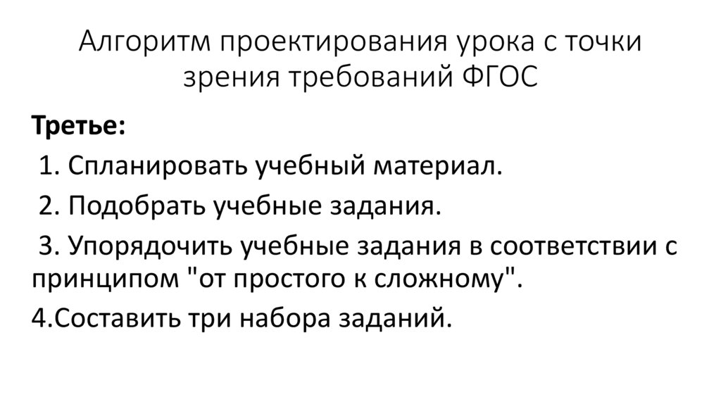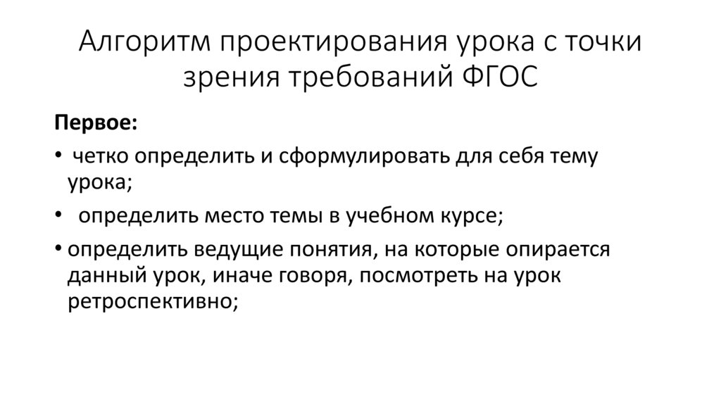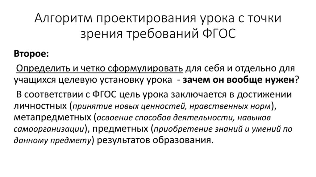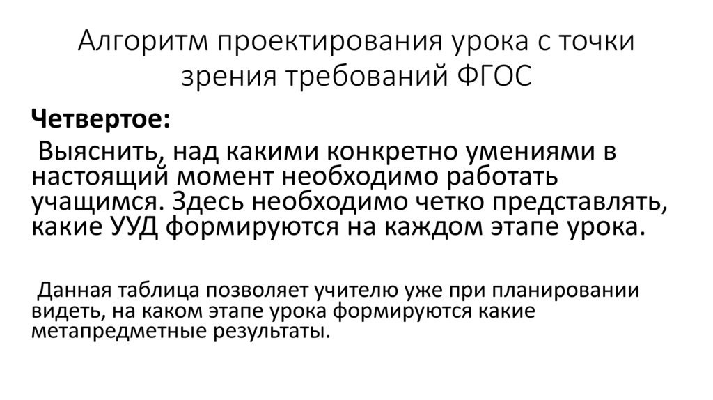 Алгоритм проектирования урока с точкизрения требований ФГОС