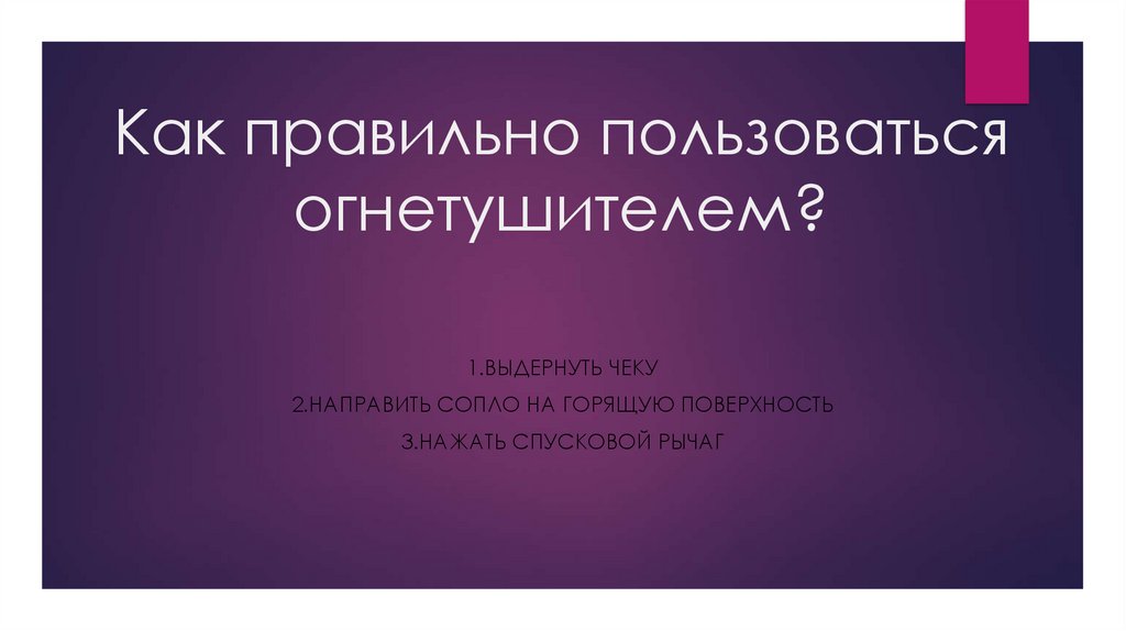 2.НАПРАВИТЬ СОПЛО НА ГОРЯЩУЮ ПОВЕРХНОСТЬ