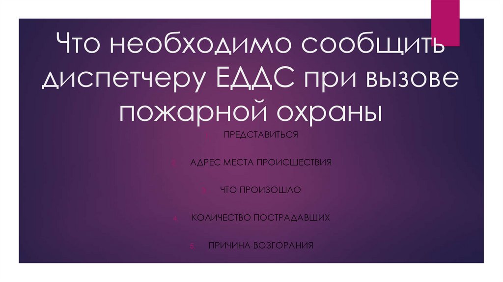 Что необходимо сообщитьдиспетчеру ЕДДС при вызове