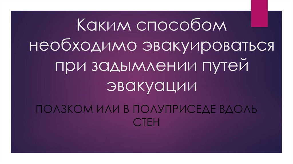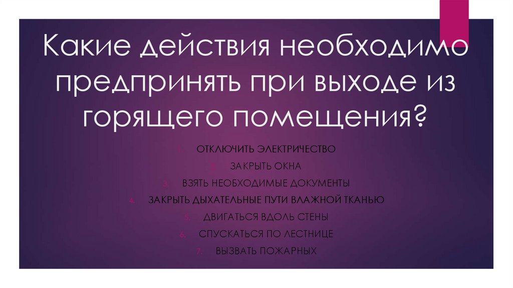 3. ЕСЛИ ВЫХОД ИЗ ПОМЕЩЕНИЯ ВОЗМОЖЕН, ТО ВЫЙТИ И ПОДНЯТЬСЯ НА