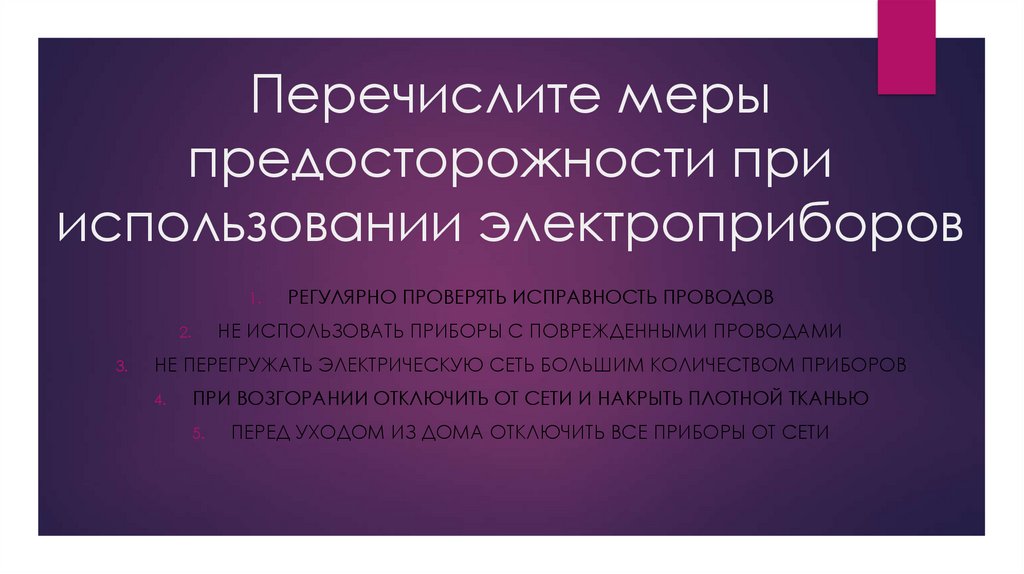 НЕ ПЕРЕГРУЖАТЬ ЭЛЕКТРИЧЕСКУЮ СЕТЬ БОЛЬШИМ КОЛИЧЕСТВОМ ПРИБОРОВ