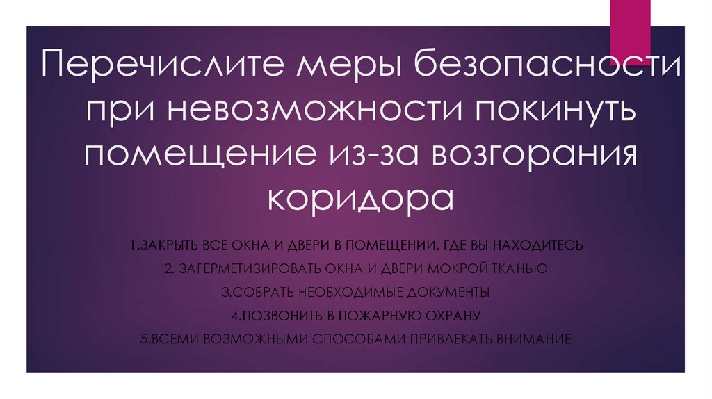 5.ПРИ НЕВОЗМОЖНОСТИ ПОКИНУТЬ ПОМЕЩЕНИЕ, ЗАНЯТЬ МЕСТО В ДВЕРНЫХ ПРОЁМАХ