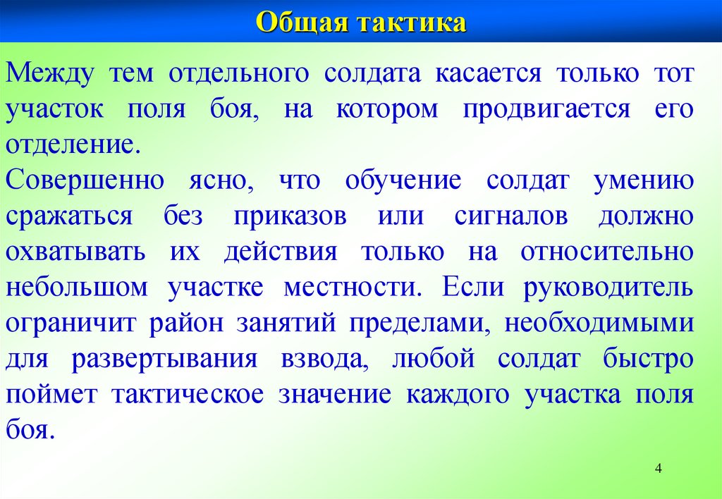 Общая тактикаМежду тем отдельного солдата касается только тот