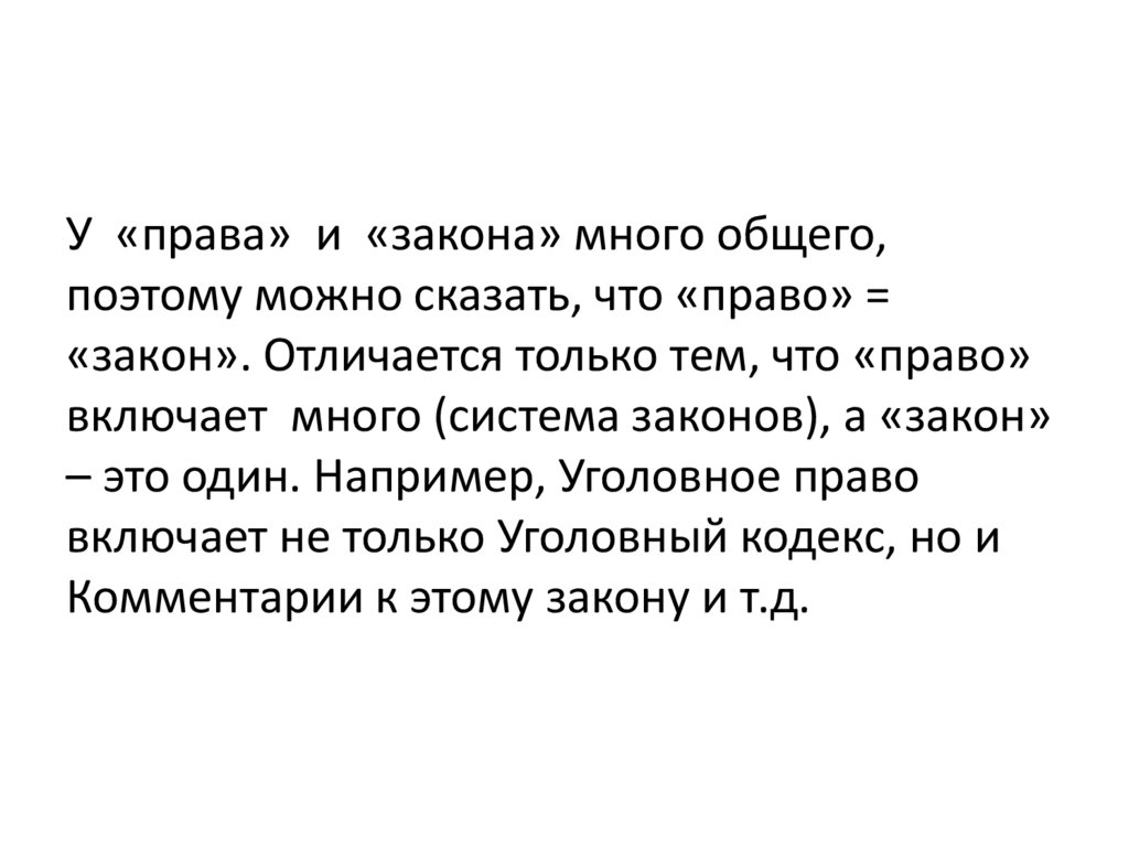 У «права» и «закона» много общего,поэтому можно сказать, что «право» =