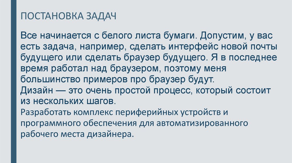 ПОСТАНОВКА ЗАДАЧВсе начинается с белого листа бумаги. Допустим, у вас