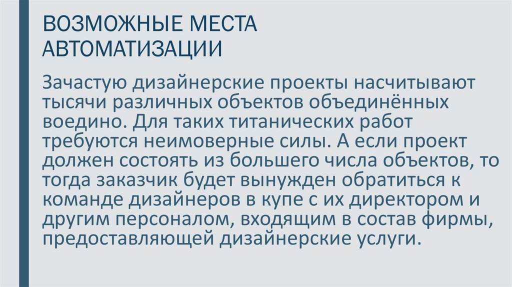 Зачастую дизайнерские проекты насчитывают