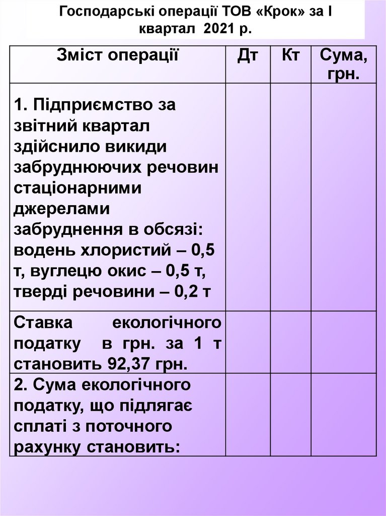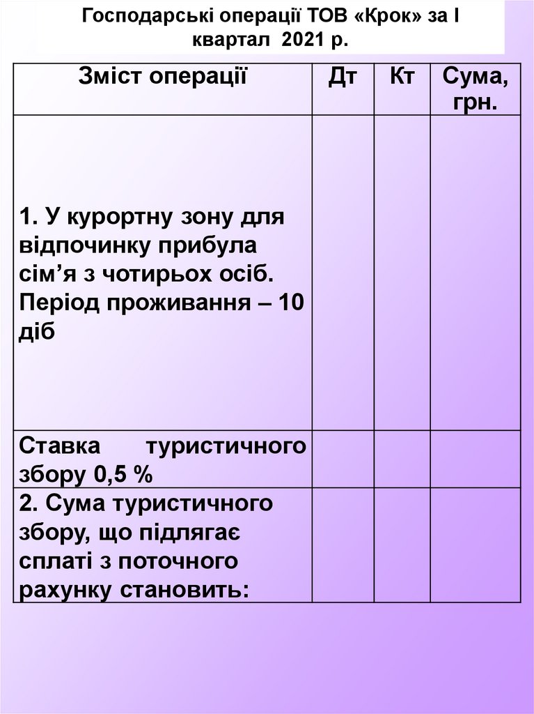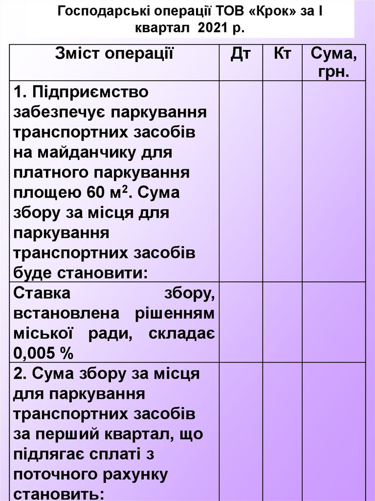Господарські операції ТОВ «Крок» за Іквартал 2021 р.